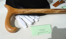 ![]() Cliff Walsh Mantle clock | ![]() Cliff Walsh First place spindle turned item,New Guinea Community Hut Blackwood, Acrylic finish |